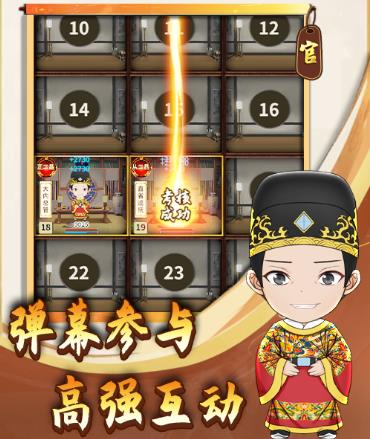 本玩法模拟古代书院场景,参考真实历史官职,给观众带来穿越百年的书院之旅。观众发送弹幕参与随机事件,或与其他观众互动,体验到“纵横官场”的乐趣。